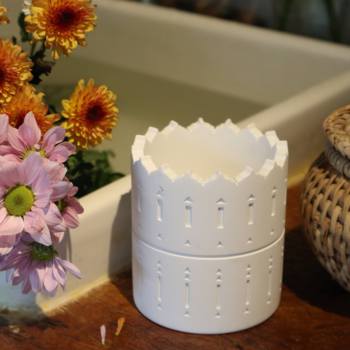 C & H all'ingrosso Design personalizzato inciso pilastro forma simbolo medio-orientale costruzione di barattoli di candele di cemento vuoto